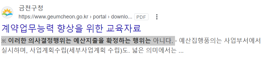 ※ 이러한 의사결정행위는 예산지출을 확정하는 행위는 아니다.
