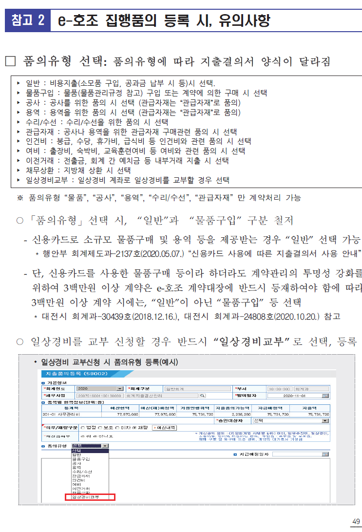 e호조 집행품의 등록 시, 품의 유형 일반으로 해도 되는 경우