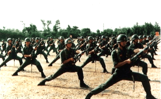ㅇ 총검술: 찔러, 돌려처, 막고 차, 좌 베어, 우베어, 뒤로 돌아 등이 있다.