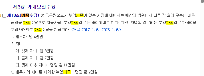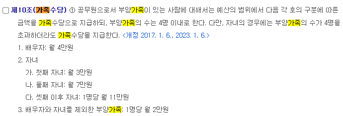 첫째 자녀 2만원, 둘째자녀 6만원의 배우자 수당은 2023년 바뀌고