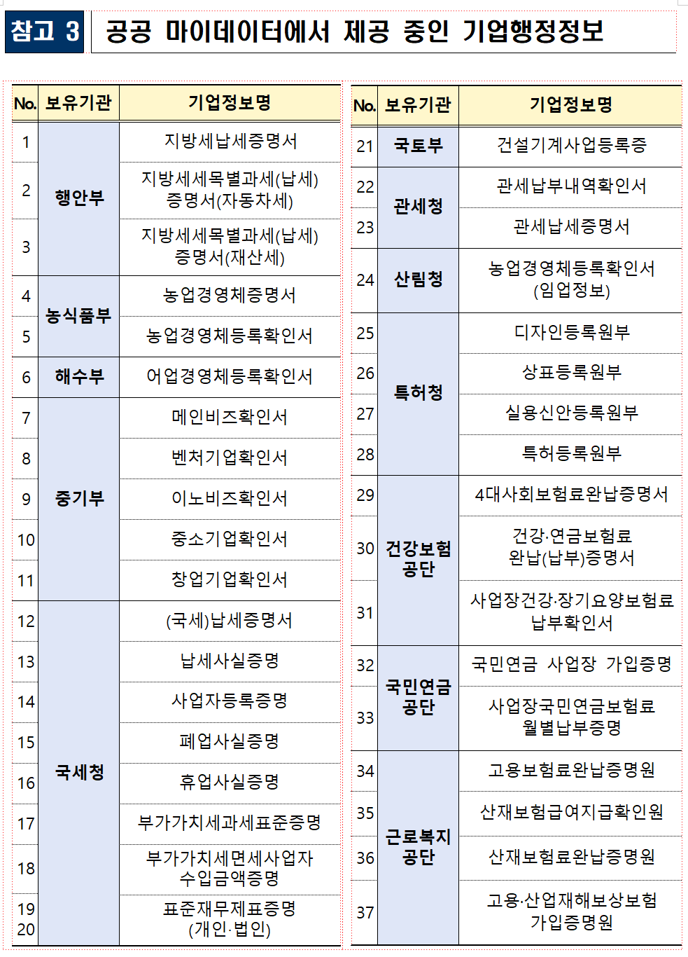 1. 행정기관등
