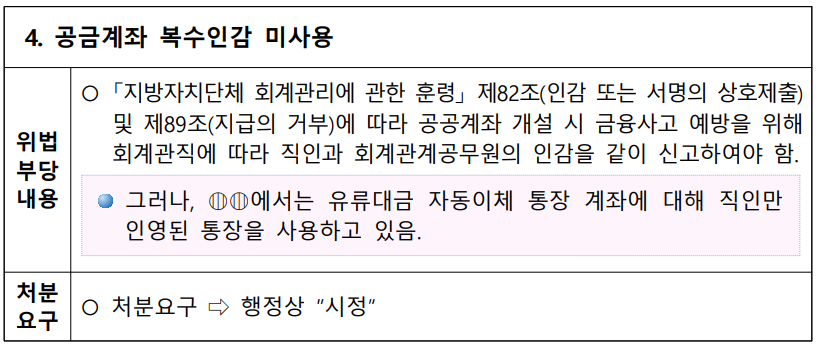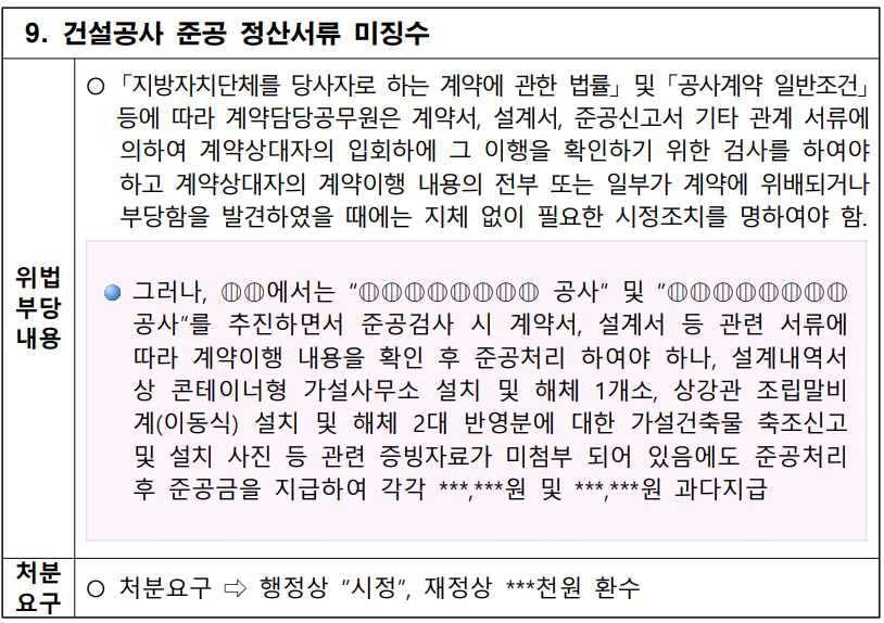 동에서는 행정사무감사라는 것을 한다. 이것을 미리 살펴본다면 재차 적발되는 것을 미연에 방지할 수 있다. 사건 사고의 회피를 위해서는 미리 예견을 해야한다. 본 게시글은 무작위로 구글에서 검색하여 일부 등록한 것으로 해당지자체가 유난히 지적이 심각하다거나 중하거나 그런것은 아니다. 오히려 감사결과를 투명하게 공개한 점을 감사하게 생각한다. 시간관계상 일부만 등록하였고 하나하나 읽어보고 추가로 계속적으로 등록하고자 한다.