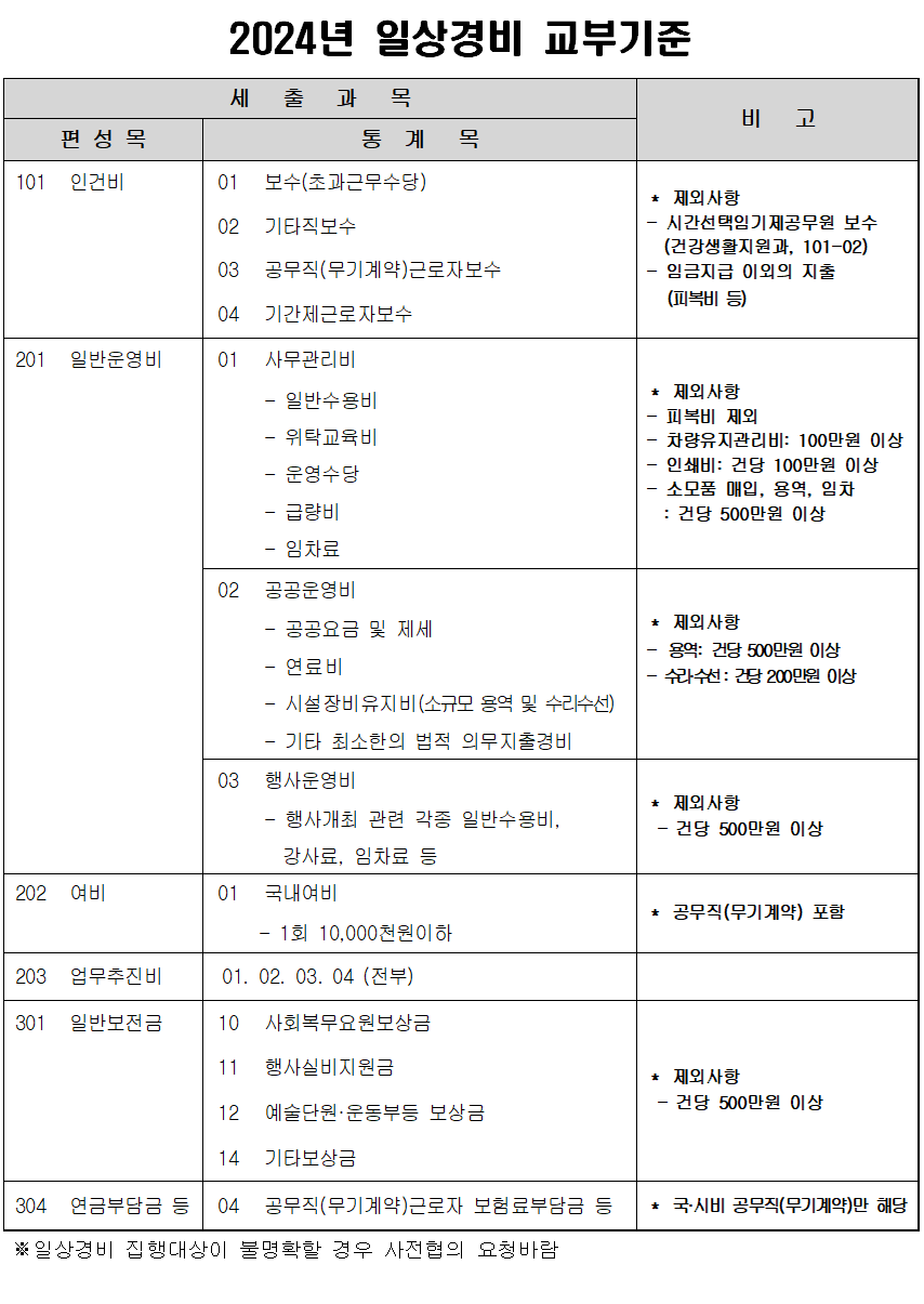 일상경비 교부 한도액은?(**구) | **구 재무회계규칙개정됨에 따라 기존 1회 100만원에서 300만원으로 변경시행하고 있습니다. (우리구의 경우 확인필요) |