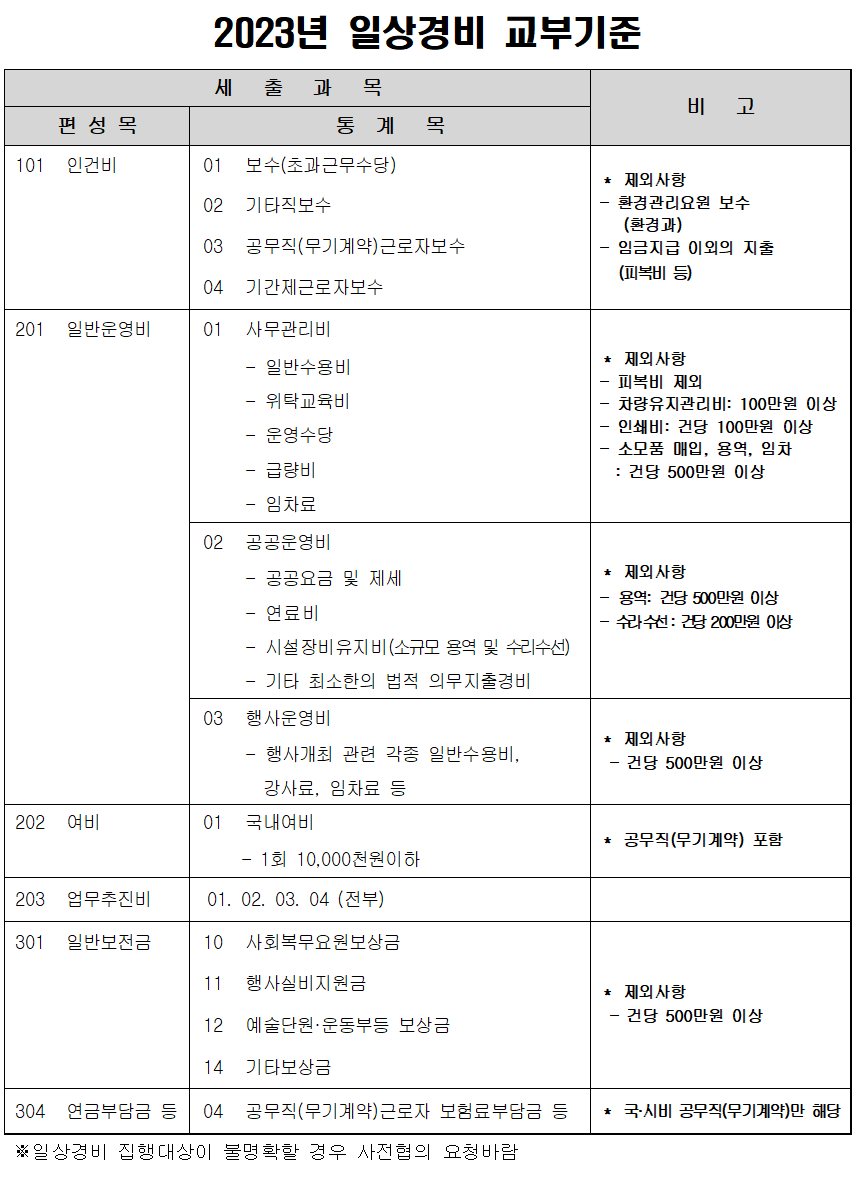 2022년 대비 일상경비 교부 범위가 축소되었습니다.