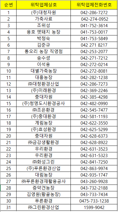 일부발췌, 핸드폰 번호의 경우 개인정보로 인해, 핸드폰 번호로 되지 않은 업체 명만 기재함.