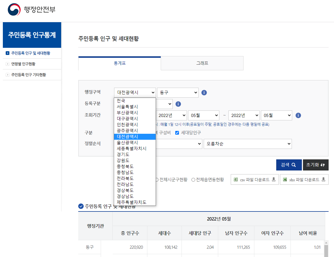 주민등록 인구수를 어떻게 알 수 있을까? 타부서에 문의해야 하는가? 주민등록인구수는 "주민등록 인구통계"라고 네이버 구글 다음 등에서 검색하면 행정안전부에서 운영하는 주민등록 인구통계라는 사이트가 나온다.