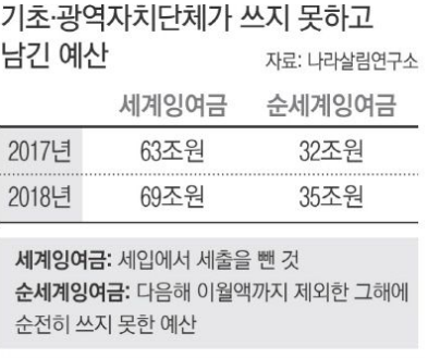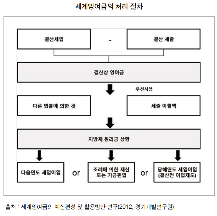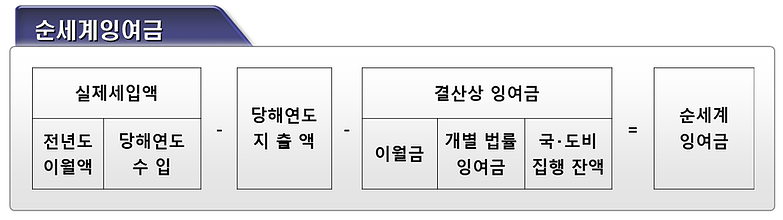 순세계잉여금이란 세(출)을 계(산하고) 남은 돈을 말한다. 쉽게 연말에 남는 집행잔액이라고 보면 이해하기 쉬울 것이다. 다만 예산액 중에 보조금처럼 상위기관에서 쓴돈은 반납되기 때문에 그런 금액을 제외하고 순수하게 구(지자체)에 남아있게 되는 돈을 말한다.
