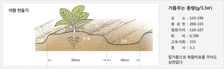 - 이랑을 만들기 전에 퇴비와 밑거름 비료를 넣는다.
