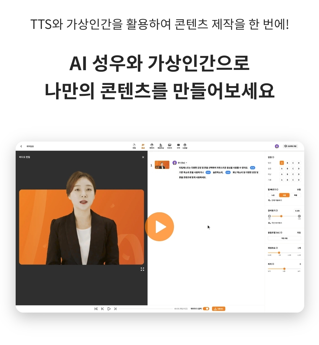 타입캐스트 | 인공지능 기반 TTS와 가상인간을 활용한 음성과 영상 제작 툴