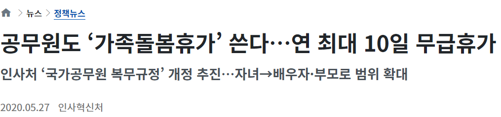 2020년 7월 개정사항(가족돌봄휴가 사유 확대) : https://www.mpm.go.kr/mpm/info/infoService/BizService01/