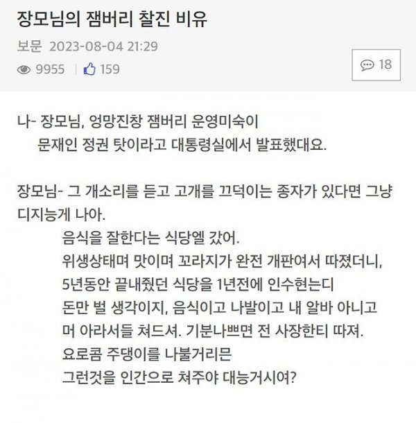 잼버리 사태 식당운영과 비유