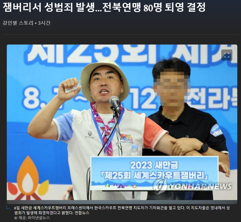 2023 새만금 세계스카우트 잼버리 대회에서 영국, 미국, 벨기에 등 주요 참가국이 조기 퇴소했거나, 이를 예고한 가운데 현재 대회장 내 코로나19 확진자가 누적 70명을 기록한 것으로 나타났다. 폭염에 연일 온열질환자가 속출하며 행사 지속이 불투명해졌는데, 엎친데 덮친격으로 코로나19 확진자까지 대거 발생하고 있는 것이다.