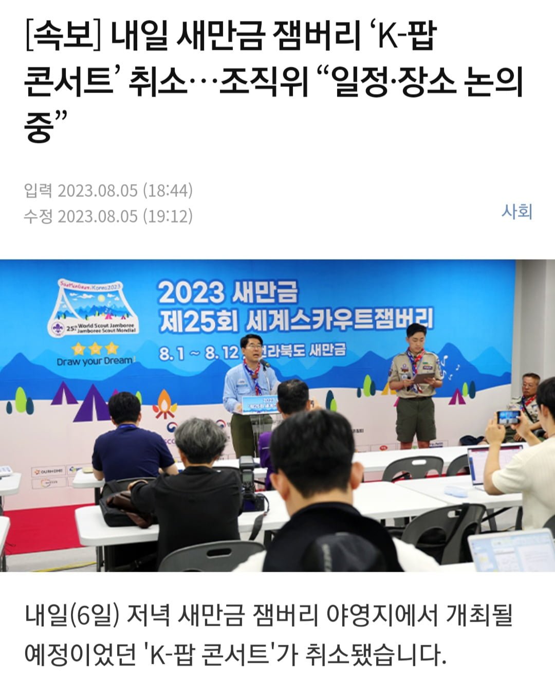 2023 새만금 세계스카우트잼버리가 사실상 중단 위기에 처했다.