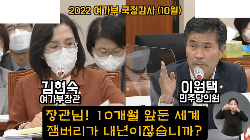 2022년 10월 국정감사에서 이원택 국회의원은 23년 있을 세겨 잼버리 대회에서 폭염 등 여러 문제 상황이 우려되어 김현숙여가부장관에게 충분한 조치를 해야 한다고 당부했었지만 그럼에도 그 모든 문제상황을 발생시켰다.