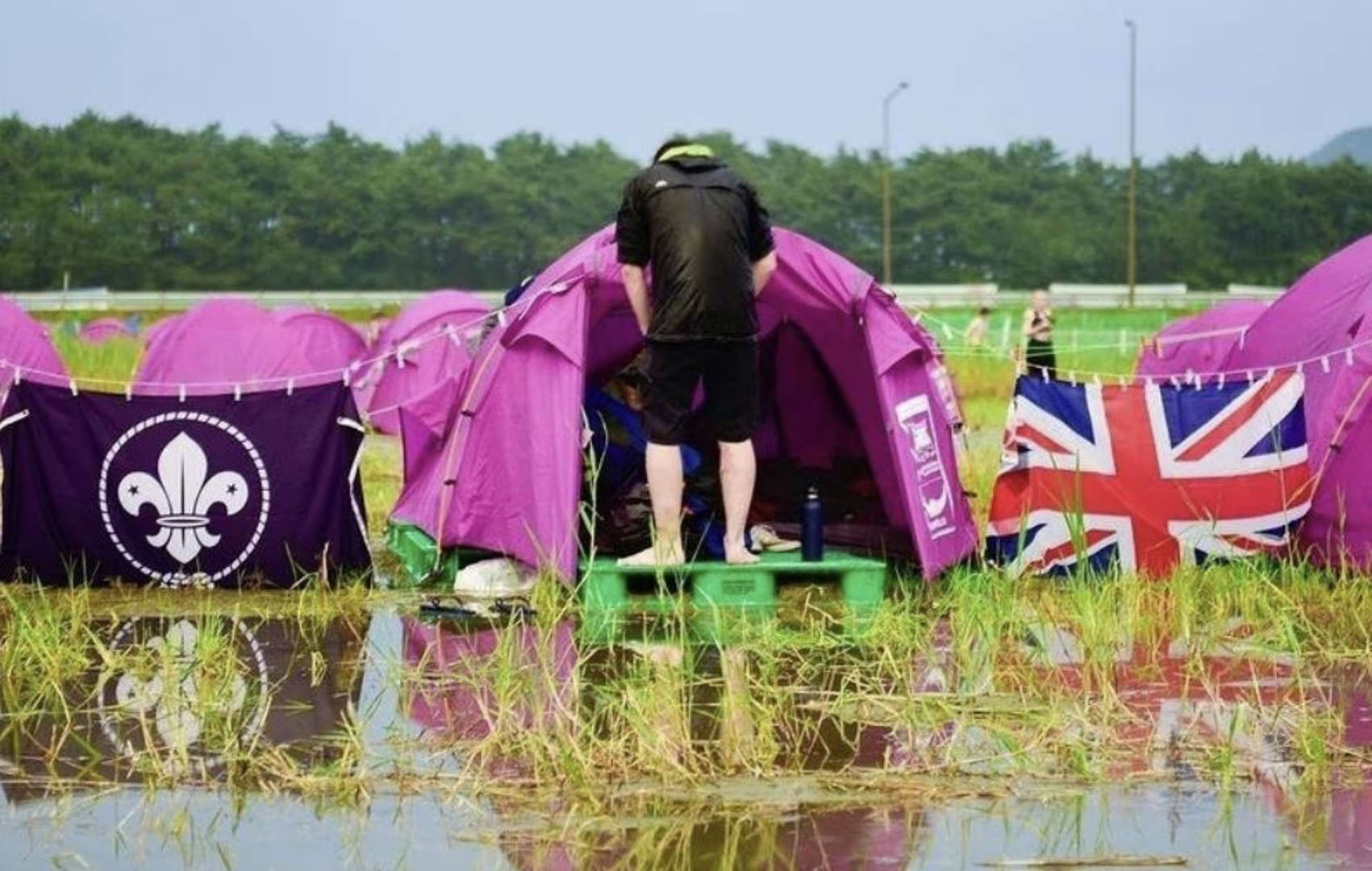 미국 스카우트 대표단이 영국에 이어 캠프장에서 조기수 했으며, 세계스카우트연맹까지 중단 권고를 전했기 때문이다.