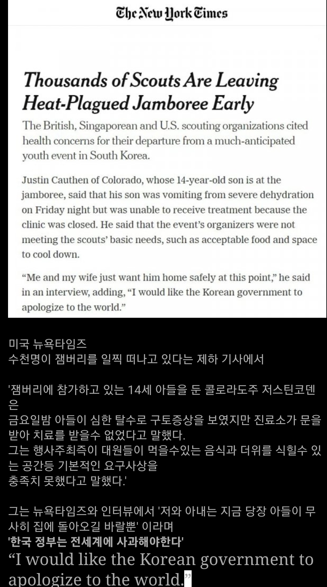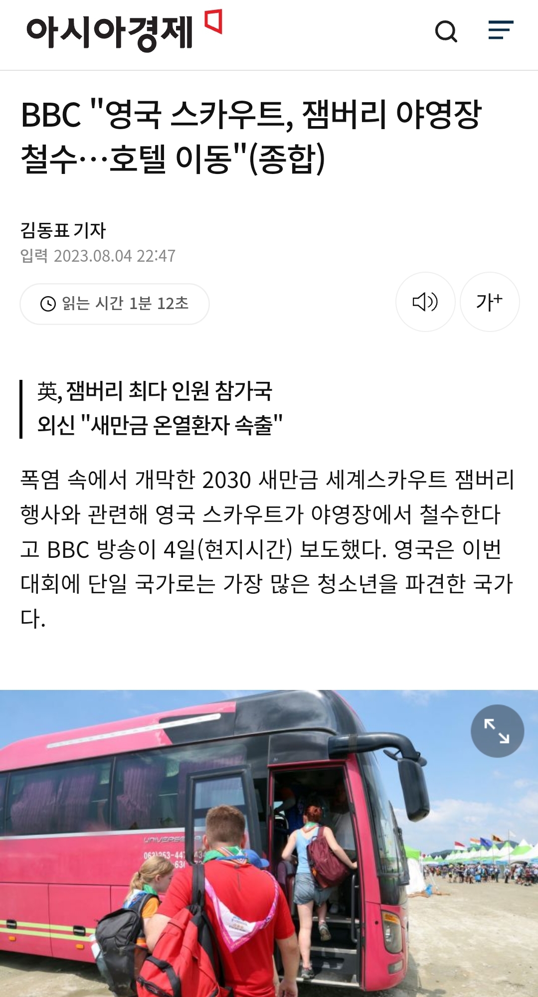 BBC에 대서 특필 보도된 잼버리행사.