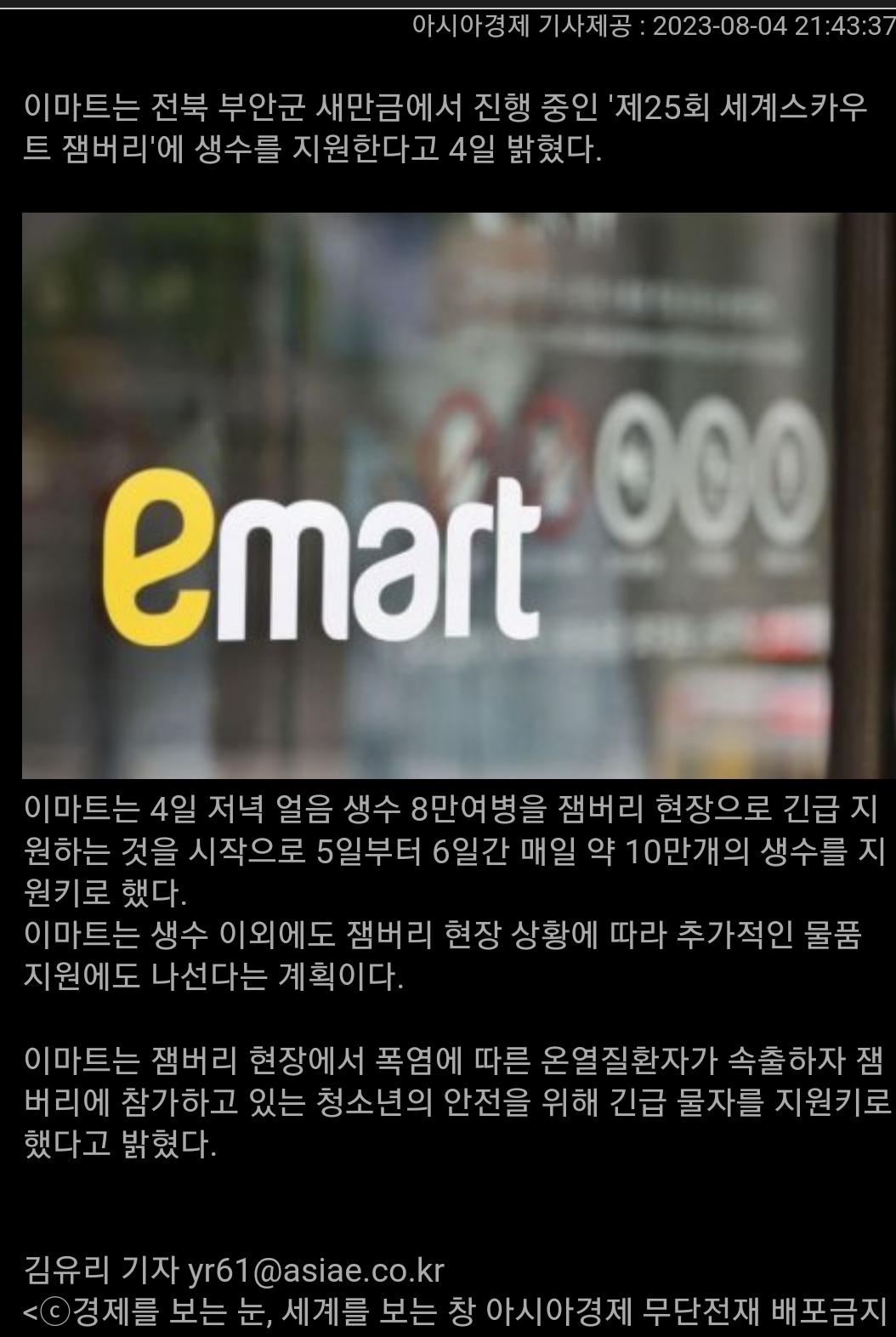 폭염으로 잼버리 참가자 들이 어려워지자 기업들이 생수를 지원하지만, 조직위에서 내부 판매업체인 GS25편의점의 생수판매가 줄어들까봐 걱정도 했나보다.