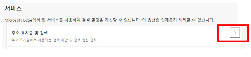3. 서비스 하부 내용에 '주소 표시줄 및 검색' 선택