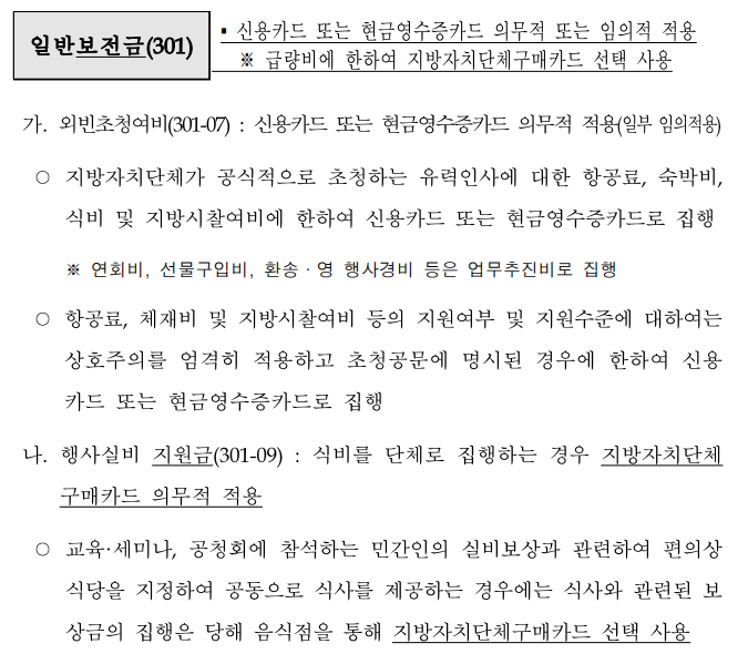 (단체급식 및 다과 시에는 지방자치단체구매카드 사용을 원칙으로 한다)
