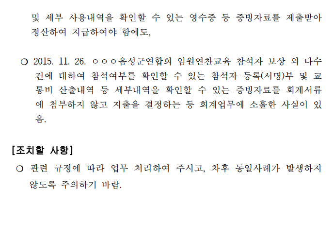 지적사례 모음 : 참석자 등록(서명)부 등의 증빙자료가 필요