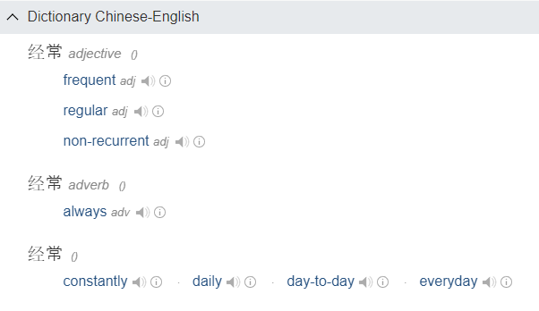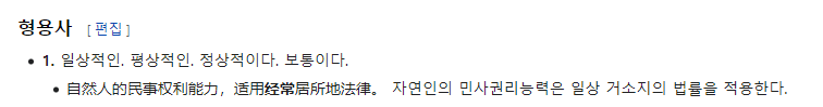 경상 (經常) 이라는 단어가 형용사로, 중국어 사전에서는 다음과 같이 나온다.