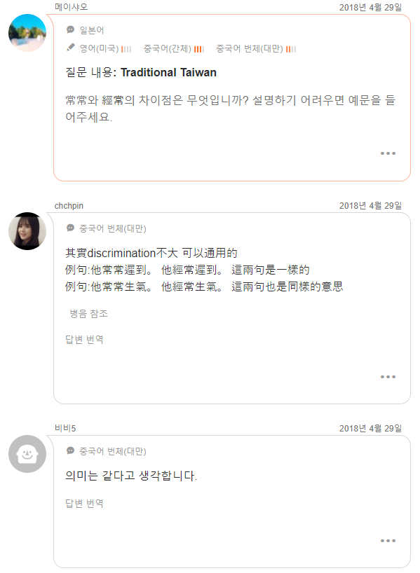 한자 문화권에 영향받는 이웃나라 일본에서도 [經常の意味: 항상 일정하고 변경되지 않음 ] 에 대해서 궁금해 하는 것으로 보아, 중국어에서 유래된 말로 이해할 수 있다. 마침 일본인이 중국어 " 經常"에 대해 물어본 사례도 있다.
