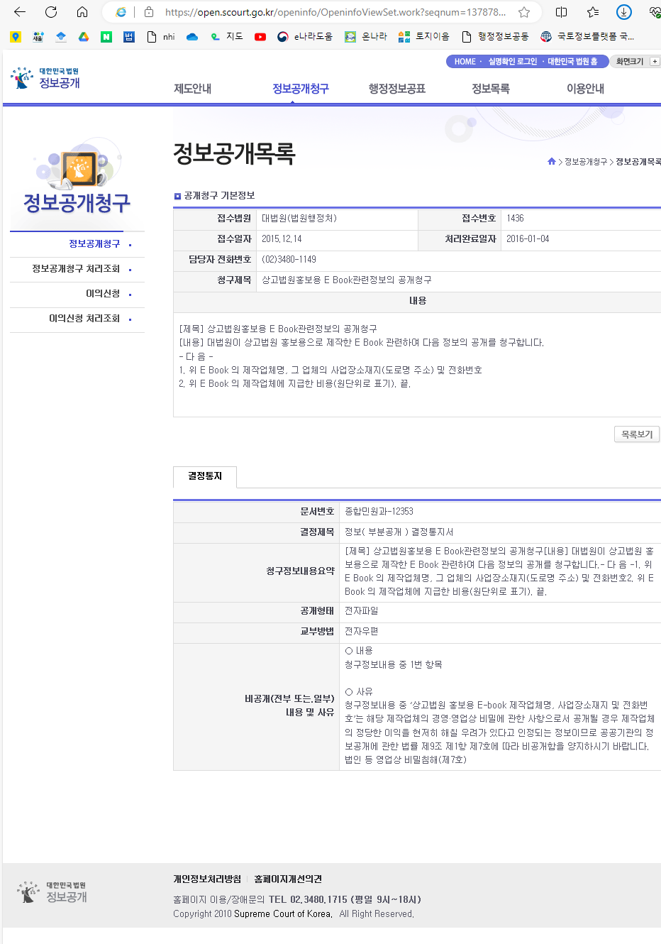 - 법령이 정하는 바에 따라 열람할 수 있는 정보