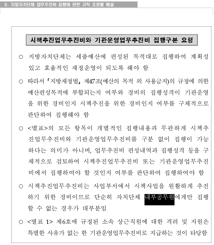 우선 시책업무추진비는 외부인사를 대상으로 집행하라는 얘기도 있는데 그 근거는 다음과 같다.