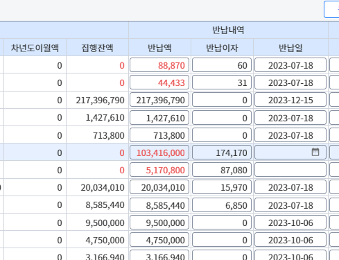 2023년도 반납 내역을 확인해보면,