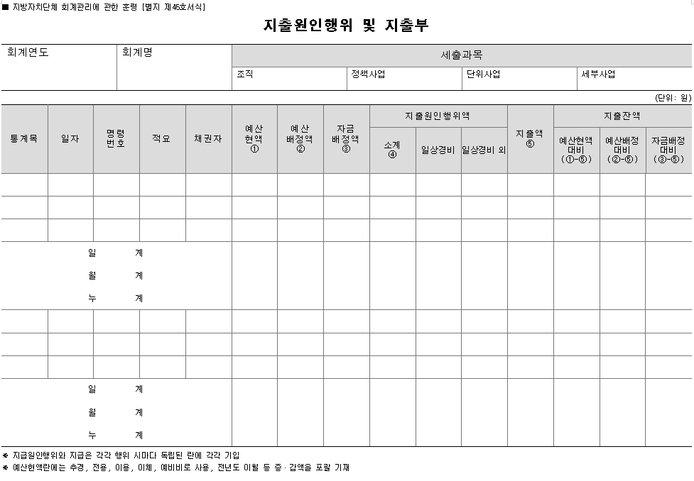 본 훈령에 지출부를 별지45로 정하고 있다.